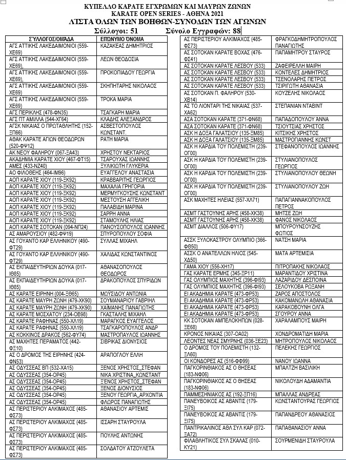 Ειδικά στα σωματεία καράτε διανεμήθηκαν τα ποσά του Πίνακα με κλικ εδώ σε PDF κατά αλφαβητική σειρά στις εικόνες πιο κάτω (οι χρονιές είναι το έτος ίδρυσης για κάθε σωματείο):