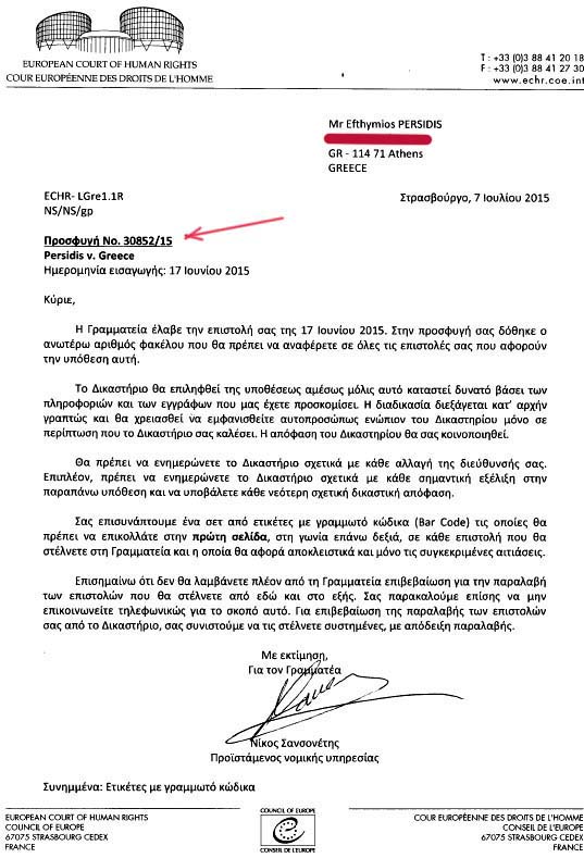 Απόφαση ΕΔΔΑ για την από 28/4/2006 4η Μήνυση Δρακόπουλου κατά Περσίδη για την οποία υποβλήθηκε Προσφυγή στο ΕΔΔΑ από τον Θύμιο Περσίδη τον Ιούνιο του 2015.