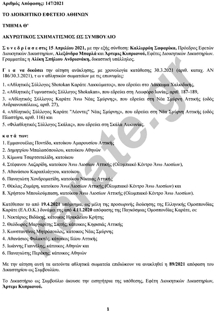 Η φοβερή και απαράδεκτη Απόφαση 147/21.4.2021 του Διοικητικού Εφετείου Αθηνών χωρίς σχόλια!!!