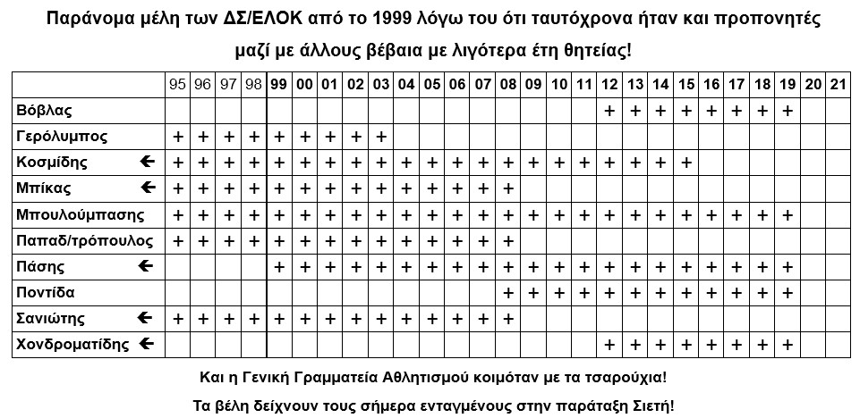 Μια αναδρομή στο αρχείο των ΔΣ/ΕΛΟΚ έδωσε τον επόμενο πίνακα των παράνομων μελών του ΔΣ ανά έτος!