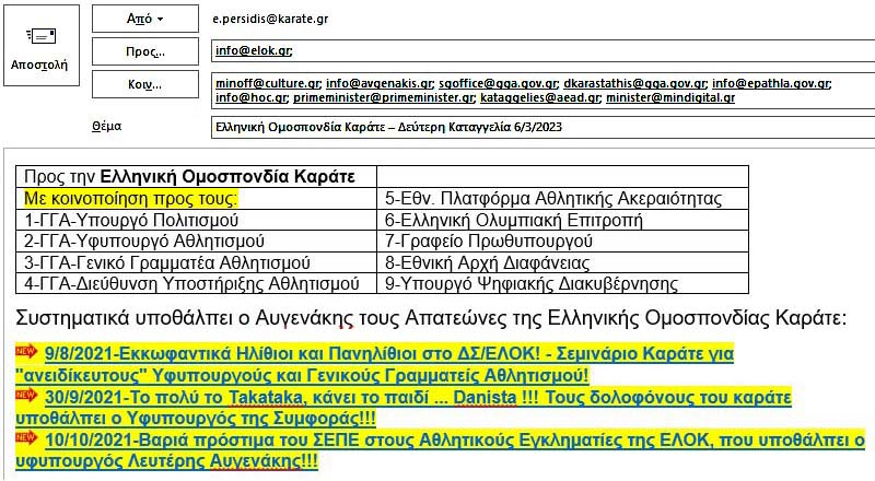 Καταιγίδα Νταν στην ΕΛΟΚ στο γνωστό σύστημά της "Takataka Karate-do" από το Διοικητικό της Συμβούλιο: