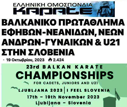 Σύμφωνα με τις επίσημες καταστάσεις οι οποίες έχουν αναρτηθεί από την ΕΛΟΚ, ο σύλλογος μας συμμετείχε στο Βαλκανικό Πρωτάθλημα Καράτε Εφήβων-Νέων-U21 που διοργανώθηκε στην Λιουμπλιάνα στις 17-19/11/2023 ως μέλος της ελληνικής ομάδας, με μία συμμετοχή ανήλικης αθλήτριας. Στον δεύτερο αγώνα η αθλήτρια του συλλόγου τραυματίστηκε σοβαρά και μεταφέρθηκε εσπευσμένα σε νοσοκομείο και εν συνεχεία αεροπορικώς στην Αθήνα.