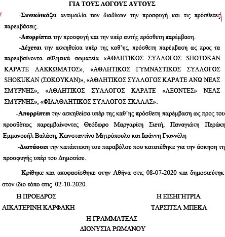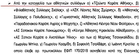 Προπόνητών Καράτε της ΓΓΑ και τους καταλόγους των μελών των ΔΣ από το