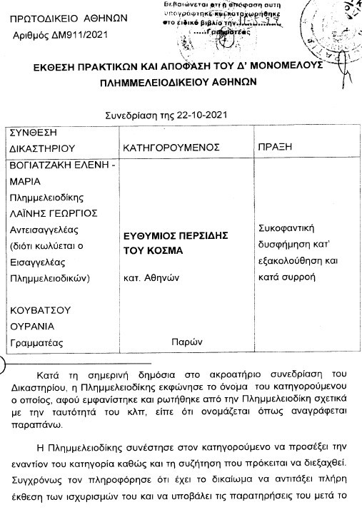 εναντίον Κοσμίδη-Ι. & Α. Πανουσόπουλου-Αθανασόπουλου-Περσίδη-Δρακόπουλου!
