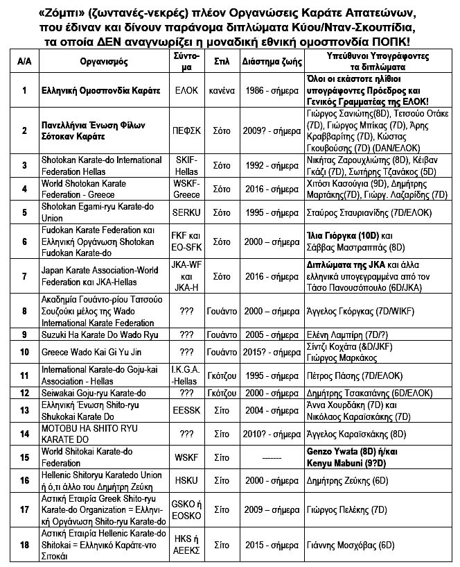Είκοσι ανεξάρτητες και παράνομες παρα-οργανώσεις καράτε αυτοσυστήνονται ως "παραδοσιακές" και πουλάνε παράνομα Νταν και μοιράζουν παράνομα διπλώματα εισπράττοντας μαύρο χρήμα επί 35 χρόνια!