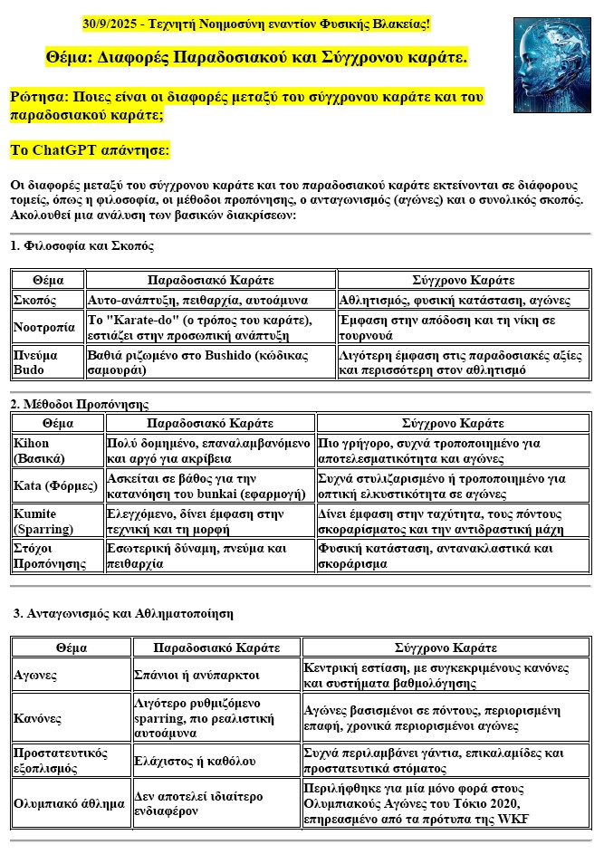 Α - Τεχνητή Νοημοσύνη εναντίον Φυσικής Βλακείας! Θέμα: Το Παραδοσιακό Καράτε διεθνώς. (Ενότητες)