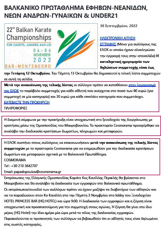 Και άλλοι Φανατικοί μας αναγνώστες: Μόλις το www.karate.gr δημοσίευε την 19/10/2022, 11:22 πμ, κριτική ότι η ΕΛΟΚ προσκαλεί σε Γενική Συνέλευση Προϋπολογισμού την 30/10/2022 χωρίς να έχει δημοσιεύσει ακόμα τον Προϋπολογισμό, ΑΜΕΣΩΣ την ίδια μέρα και την 19:15 το απόγευμα ο Γραμματέας Μητρόπουλος δημοσιεύει στη ΔΙΑΥΓΕΙΑ το Πρακτικό με τον Προϋπολογισμό, που συνέταξε ο Ταμίας Φυλακτός! Με βάζουν σε σκέψεις να βγάλω ... κουπόνια για ... γαριδάκια για τους φανατικούς αναγνώστες του www.karate.gr!!!