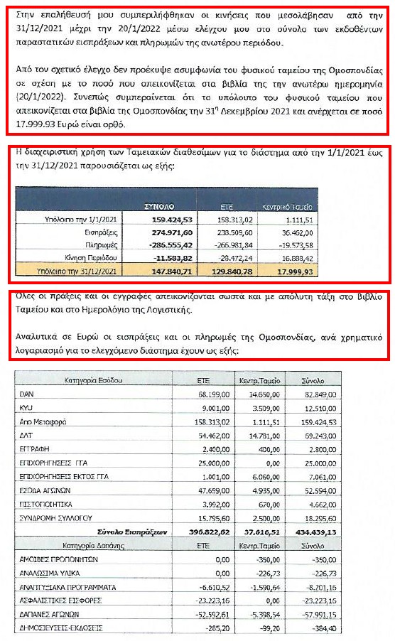 ... και μια φετινή γεύση-Έκθεσης της Ελεγκτικής Επιτροπής, που στάλθηκε στους συλλόγους είναι η επόμενη: