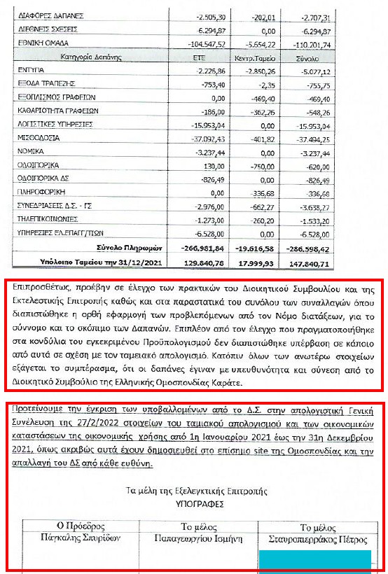 Στο (5) μας λένε ότι για τους αγώνες του Κ1 τον Ιανουάριο του 2023 μια συγκεκριμένη εταιρεία έστρωσε και ξέστρωσε τα τατάμι με 2.000 € και ζητάνε το τιμολόγιο, που εξέδωσε! Αλλά η εκδήλωση του Ιανουαρίου 2023 είναι έξω από τις αρμοδιότητες της ΕξΕπ του 2022, ενώ η εταιρεία αυτή είναι γνωστή και πρόκειται για την Αστική Μη Κερδοσκοπική Εταιρεία "Ελληνικό Καράτε Σιτοκάι" των Γιάννη Μοσχόβα και Μάμης Ούτο! Το θέμα αυτό θα μελετηθεί ιδιαίτερα στην Ενότητα Γ!