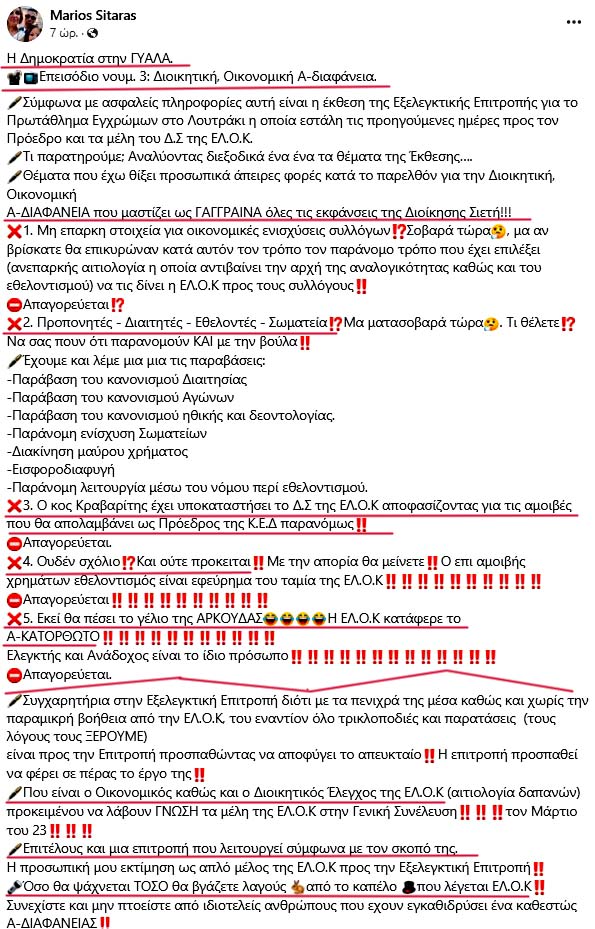 Το Δελτίο Τύπου της ΕΛΟΚ το συμπληρώνει, όσο μπορεί, ο Μάριος Σιταράς στο λογαριασμό του στο Facebook!!!