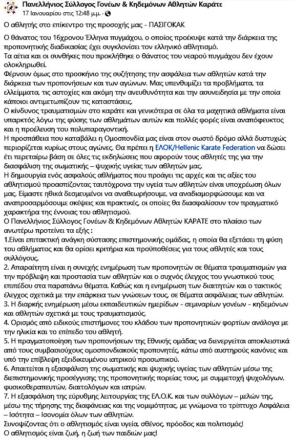 Επίλογος επιτέλους… Στέλνω επίσης τους χαιρετισμούς μου σε έναν άλλον προπονητή που τον ξέρω από μικρό παιδί και τον συνόδευσα στα πρώτα του βήματα στο Καράτε. Θα τον συμβουλεύσω να αποσυρθεί από τον χώρο ζητώντας μια ειλικρινή συγνώμη, επιδεικνύοντας έμπρακτα μεταμέλεια για τις πράξεις του, δεχόμενος την οποία ποινή του επιβλήθηκε (χωρίς να ασκήσει έφεση), αλλάζοντας σελίδα στην ζωή του γνωρίζοντας ότι η εν λόγω συμπεριφορά του δεν έχει καμία δικαιολογία και είναι ασυγχώρητη από έναν Γονέα που του έχει εμπιστευθεί το παιδί του…. Του το λέω ως συμβουλή λόγω της γνωριμίας μας γιατί αν τον συναντήσω δεν θα ξέρω ποια θα είναι η αντίδραση μου!!! Εγώ δεν είμαι τόσο πολιτισμένος και ψύχραιμος όσο οι συγκεκριμένοι γονείς ….και μπράβο τους ειλικρινά!!!