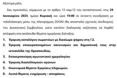Προηγήθηκε η πρόσκληση σε συνεδρίαση του ΔΣ: