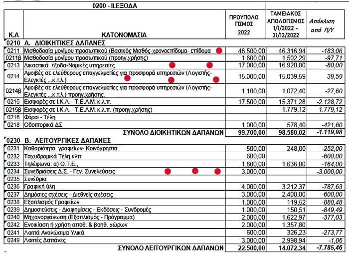 αναφοράς στην Έκθεση του Ορκωτού για το τεράστιο ποσό των 374.928 ευρώ για τα