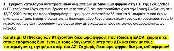 Σωματείων της ΓΓΑ, αφού μόνο 91 έχουν δικαίωμα ψήφου, και εξαπατά