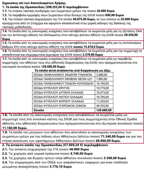 1.8 - Τα έσοδα 11.000 € δήθεν οικονομικών ενισχύσεων των συλλόγων για συμμετοχές των αθλητών τους στις εθνικές ομάδες είναι επίσης μια απάτη της ΕΛΟΚ, διότι στην πραγματικότητα τα λεφτά αυτά τα πληρώνουν οι γονείς των αθλητών και όχι οι σύλλογοι, οι οποίοι αν τα πλήρωναν θα είχαν κλείσει μια ώρα νωρίτερα!