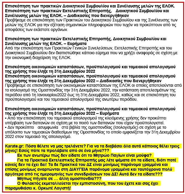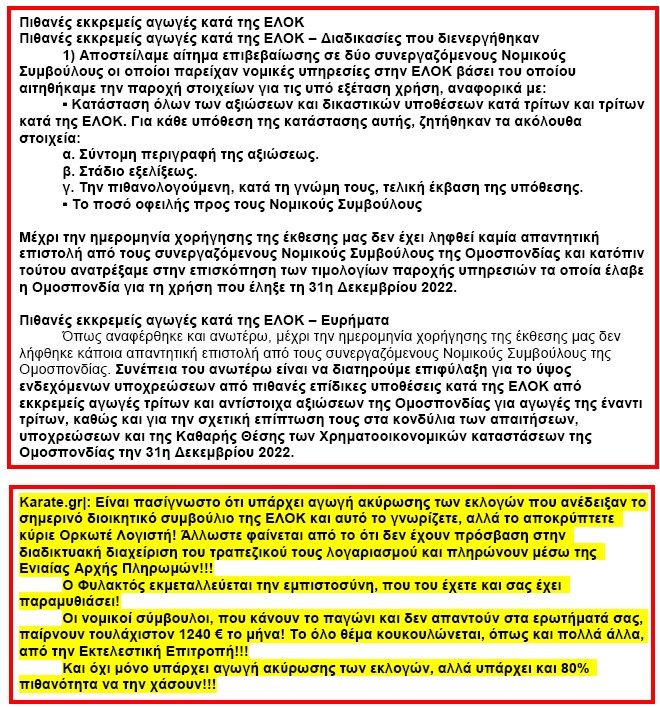 Από την 1/3/2023 καταγγέλθηκαν αναδρομικά από την 29/5/2021 όλες οι παρανομίες του Διοικητικού Συμβουλίου της ΕΛΟΚ σε όλες τις αρμόδιες υπηρεσίες με emails, ώστε να μην λένε ότι δεν ξέρουν! |