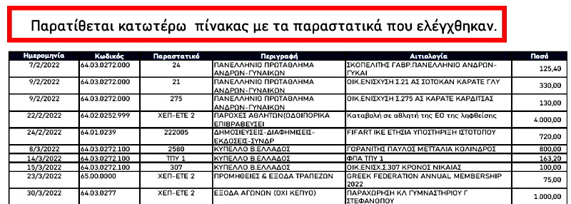 Δ) κόβοντας εικονικές αποδείξεις στους συλλόγους για λεφτά, που πληρώνουν αθλητές και γονείς για ανανεώσεις δελτίων των αθλητών.
