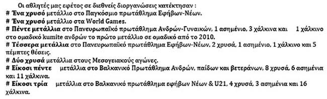 Από το (Β) στην Ανάπτυξη του Αθλήματος του Κώστα Μητρόπουλου έχουμε ότι: εκδόθηκαν 3.567 νέα δελτία αθλητών και θεωρήθηκαν 6.793 παλαιά δελτία αθλητών!