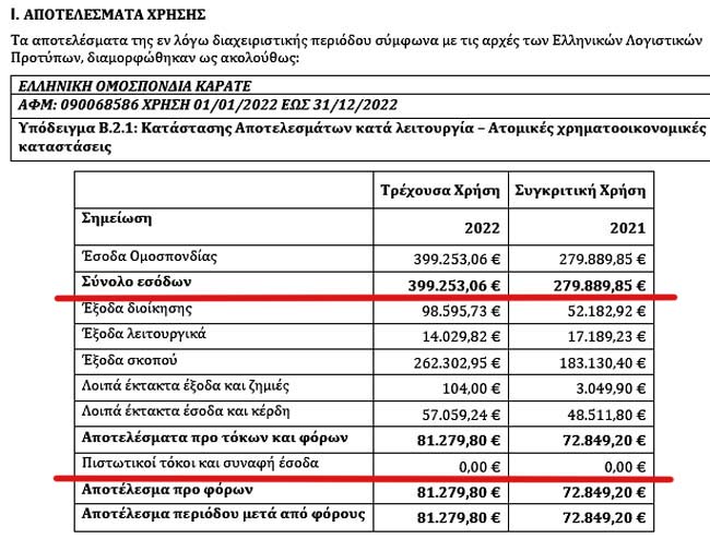 Όπως γίνεται φανερό εκ των ανωτέρω, στις 399.000 € των εσόδων της ΕΟΔΙ-ΞΕ.ΒΡΩ.ΧΡΗ. για το 2022, το άθροισμα των παράνομων εισπράξεών της είναι 30.000 + 16.000 + 50.000 + 11.000 + 71.000 + 70.000 = 248.000 € και αποτελούν οικονομικές απάτες του επόμενου ΔΣ/ΕΛΟΚ και η ΕΛΟΚ εισπράττει χρήματα με καραμπινάτες ψευδείς αιτιολογίες στα παραστατικά της: