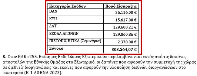 Δελτία Αθλητών 129.600 € και Έσοδα Αγώνων 129.860 €, όπου οι εισπράξεις τους γίνονται καραμπινάτα παράνομα, διότι όλα αυτά τα πληρώνουν τα πορτοφόλια των αθλητών και των γονέων τους, ενώ η "Εγκληματική Οργάνωση με Δομή και Ιεραρχία για Ξέπλυμα Βρώμικου Χρήματος" κόβει παράνομα αποδείξεις στο όνομα των συλλόγων με το αιτιολογικό "οικονομική ενίσχυση της ΕΛΟΚ"!