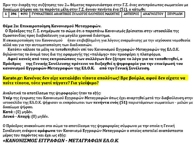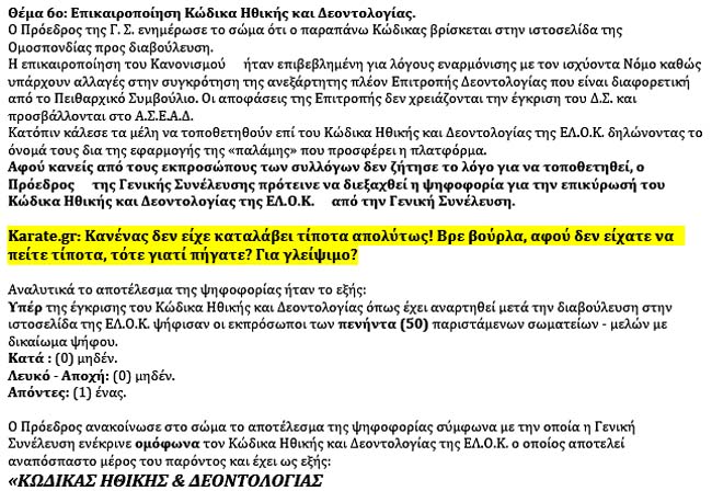 Για τα μέλη του ΔΣ υπάρχει μεταξύ άλλων και ο περιορισμός να μην είναι προπονητές καράτε, ώστε να μην προκύπτει η λεγόμενη "σύγκρουση συμφερόντων"!