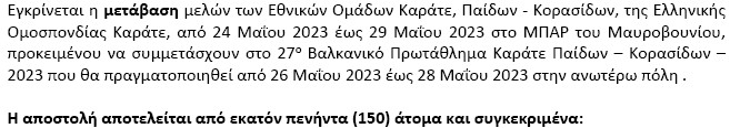"23/6/2023 - Οι καταγγελίες του Συλλόγου Γονέων Αθλητών Καράτε στα χέρια της