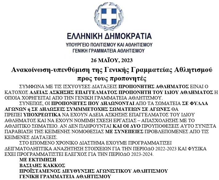 ... ενώ ταυτόχρονα η ΓΓΑ εξέδωσε την επόμενη επιστολή προς την ΕΛΟΚ, τον ΠΑΣΥΓΟΚΑΚ και τον ... εαυτό της στην απέλπιδα προσπάθειά της να καθαρίσει τη φωλιά της, που βέβαια δεν καθαρίζεται: