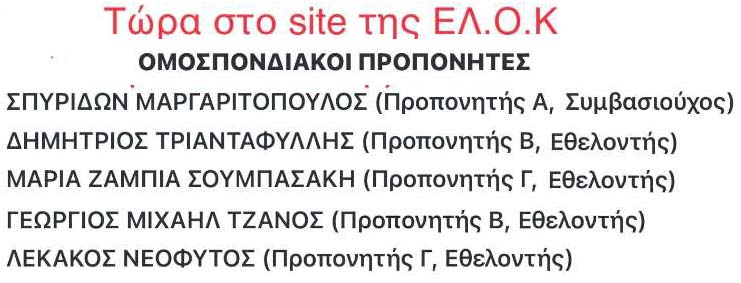 μας!) της ΕΛΟΚ, του Μαργαριτόπουλου, του συλλόγου "Η ΑΔΕΛΦΟΤΗΤΑ", της