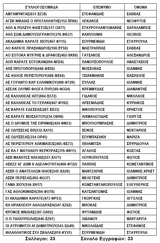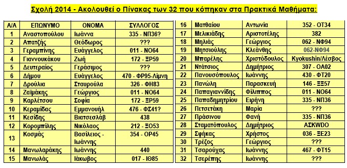 Σε Πίνακα οι 12 Κατηγορίες του Πανελλήνιου Πρωταθλήματος, όπου οι πορτοκαλί Κατηγορίες ούτε που αναφέρθηκαν, ενώ στις κίτρινες οι αθλητές ήταν τόσο λίγοι, που ... πήραν σχεδόν όλοι μετάλλια: