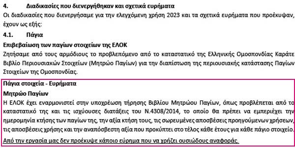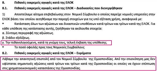 2. Το ίδιο παρατηρούμε να πραγματοποιεί πολλάκις και για άλλες δικαστικές περιπέτειες που έχει εμπλέξει την Ομοσπονδία μας για «προσωπικές τους υποθέσεις» που δεν αφορούν την ΕΛ.Ο.Κ, αλλά «τις χρεώνουν οι ίδιοι στην ομοσπονδία μας» χωρίς να έχουν λάβει ουδεμία νομιμοποίηση από τη Γενική Συνέλευση!