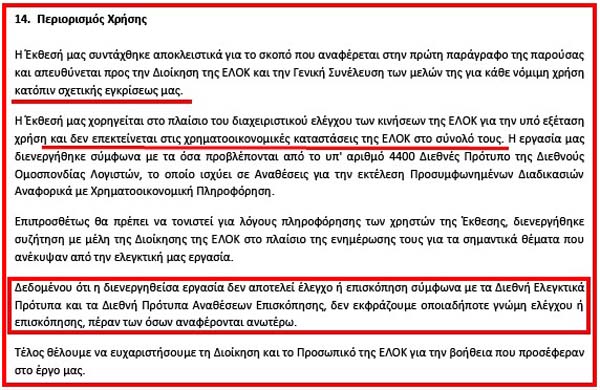 4) με Ορκωτό Λογιστή, που τους εγκρίνει παράνομα τρία χρόνια τους διαχειριστικούς και οικονομικούς ελέγχους, αφού ήδη έχουν παραιτηθεί όλα τα πέντε μέλη της Ελεγκτικής Επιτροπής, που και αυτός γνωρίζει πολύ καλά τι κάνει, και τέλος