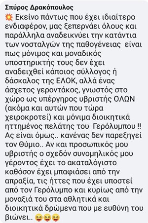 Και ακολούθησε η επόμενη πρόσφατη και σχετική ανάρτηση του Σπύρου Δρακόπουλου για να εκτιμήσετε τις απαράδεκτες βρωμιές του: