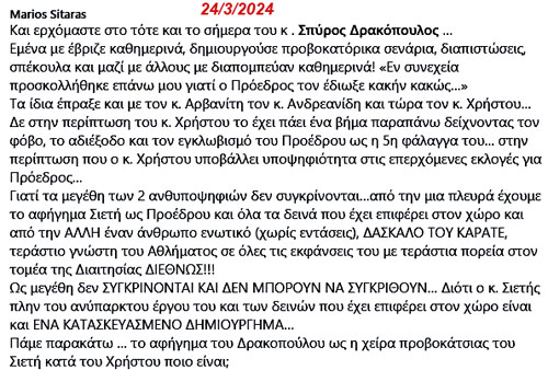 Εμείς συγκεντρώσαμε τις μέχρι σήμερα αναρτήσεις στο PDF με κλικ εδώ και σας δίνουμε τα κυριότερα μέρη του PDF στις επόμενες εικόνες αφήνoντας για δημοσίευση στο τέλος την τελευταία ανάρτηση, που αναφέρεται στο Δικαστήριο της σημερινής ημέρας 11/3/2024, Δευτέρας, στο οποίο θα ζητηθεί αναβολή από τον δικηγόρο Σπύρο Κλαδά για την πλευρά της Διοίκησης Σιετή!