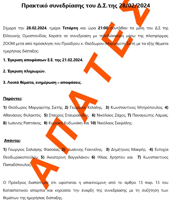 Α - 28/2/2024 - Το παράνομο Πρακτικό του ΔΣ/ΕΛΟΚ με ανάρτηση στη ΔΙΑΥΓΕΙΑ την 27/3/2024 και δεύτερη ανάρτηση την 5/4/2024! (Ενότητες)