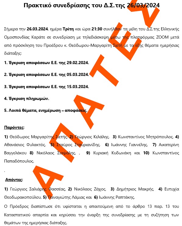 Β - 26/3/2024 - Το παράνομο Πρακτικό του ΔΣ/ΕΛΟΚ με ανάρτηση στη ΔΙΑΥΓΕΙΑ την 27/3/2024 και δεύτερη ανάρτηση την 5/5/2024! (Ενότητες)