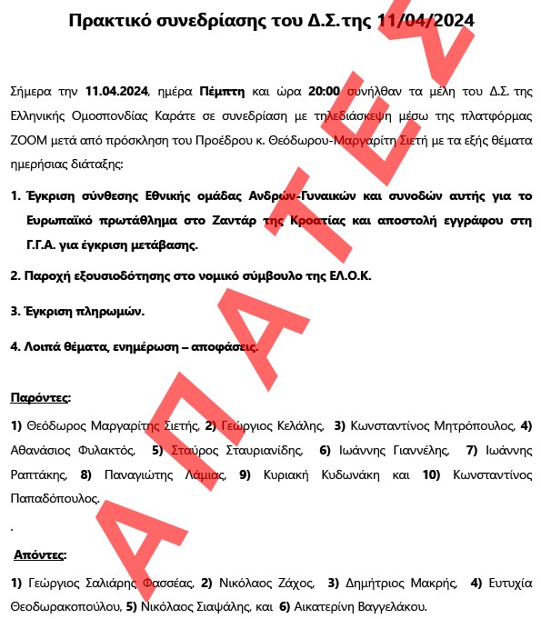 Γ - 11/4/2024 - Το παράνομο Πρακτικό του ΔΣ/ΕΛΟΚ με ανάρτηση στη ΔΙΑΥΓΕΙΑ την 12/4/2024! (Ενότητες)