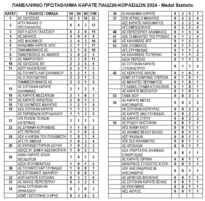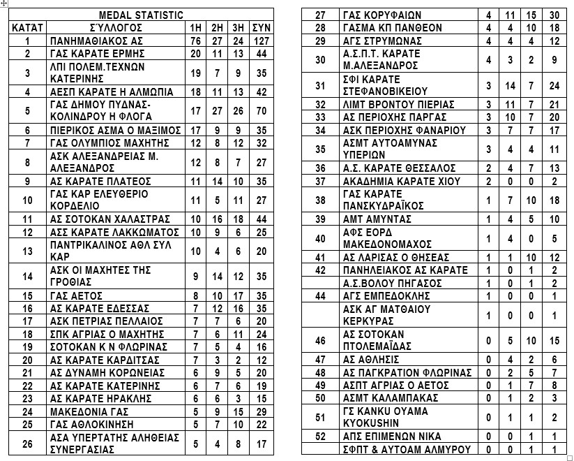 Και τέλος, ο Πίνακας των μεταλλίων ανά σύλλογο! Φυσικά οι σύλλογοι με τους πιο πολλούς αθλητές πήραν και τα περισσότερα μετάλλια! Άλλωστε ήταν τόσες πολλές οι κατηγορίες, που το πράγμα είχε ξεφύγει κατά πολύ από τη φιλοσοφία της "Ανάπτυξης" του αθλήματος και έγερνε καραμπινάτα προς την "εισπρακτική" φιλοσοφία της διοίκησης!