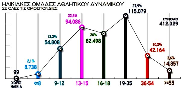 * Το Αθλητικό δυναμικό Αγωνιστικού Αθλητισμού (για κάθε άθλημα, ανά Ομοσπονδία, Περιφέρεια, ηλικία και φύλο)
