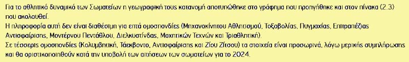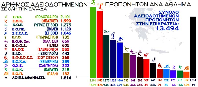 * Μόνο το 15% των σωματείων της χώρας καλλιεργεί περισσότερα του ενός αθλήματα.
