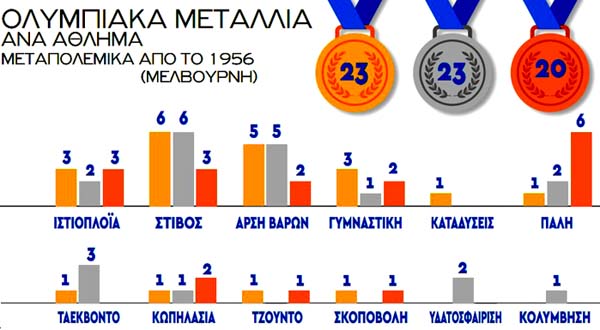 * Τα ελληνικά Ολυμπιακά Μετάλλια (από την αναβίωση των Ολυμπιακών Αγώνων στην Αθήνα το 1896 έως σήμερα).