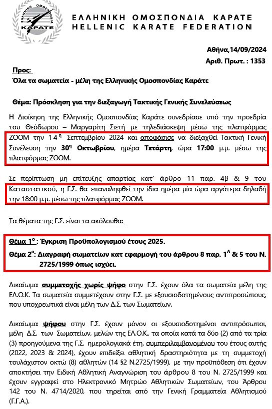 Αγαπητοί Σύλλογοι, Προπονητές, Αθλητές, Γονείς και Μέλη