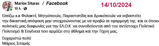 Το Πρακτικό ΔΣ/ΕΛΟΚ της 14/9/2024 (με κλικ εδώ) με ανάρτηση στη ΔΙΑΥΓΕΙΑ την 24/9/2024, δηλαδή μετά από δέκα (10) ημέρες!
