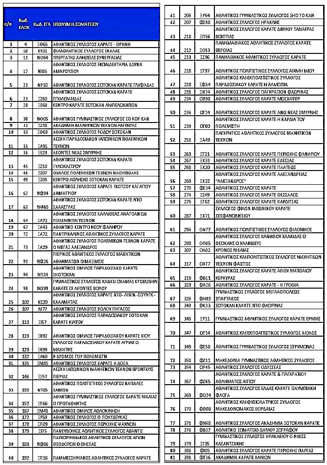 σύλλογοι είναι εγγεγραμμένοι στην ΕΛ.Ο.Κ, 167 σύλλογοι έχουν δικαίωμα