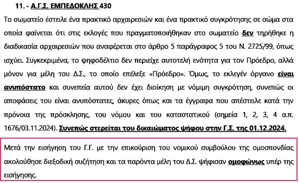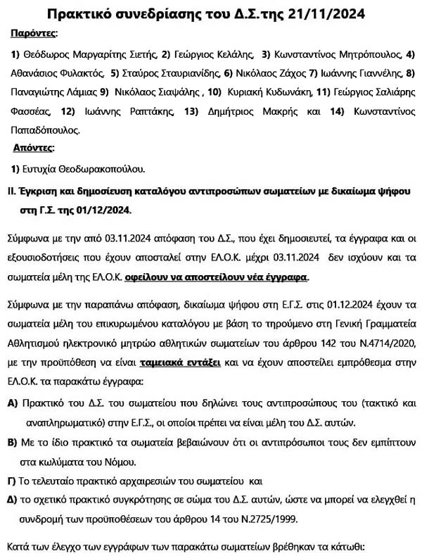 25/11/2024 (μετά από 25 ημέρες), ενώ θα έπρεπε όλα τα Πρακτικά της ΕΛΟΚ να