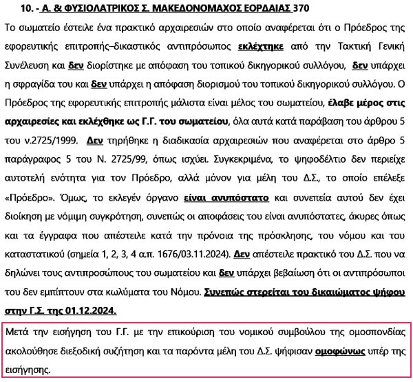 δεν τηρήθηκε η διαδικασία αρχαιρεσιών που αναφέρεται στο άρθρο 5