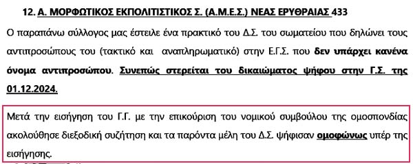 3.2. Ειδικότερα με το σκέλος της άνω απόφαση που έχει ως θέμα «Έγκριση και δημοσίευση καταλόγου αντιπροσώπων σωματείων με δικαίωμα ψήφου στη Γ.Σ. της 01/12/2024» το ΔΣ της ΕΛΟΚ :