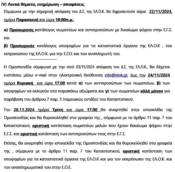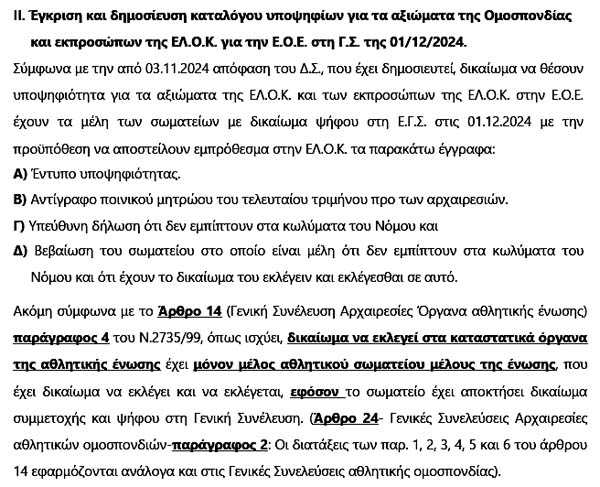 Β - 3/11/2024 - Η Πρόσκληση για τη διεξαγωγή Έκτακτης Γενικής Συνέλευσης Αρχαιρεσιών στην ΕΛΟΚ!!! Ενότητες