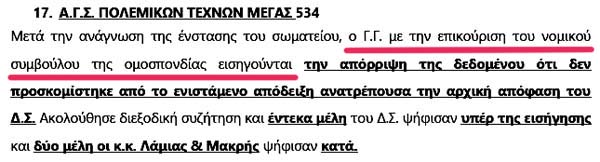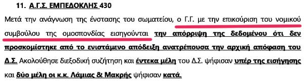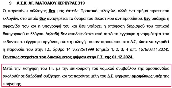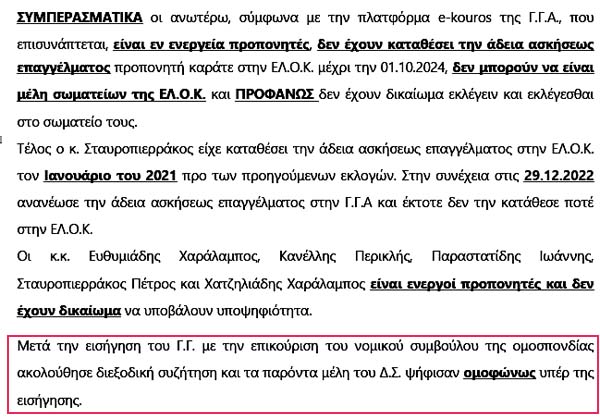 Στη συνέχεια αιτιολογούνται οι παράνομες αυθαιρεσίες του ΔΣ/ΕΛΟΚ για την εξαφάνιση των μελών της αντιπολίτευσης.