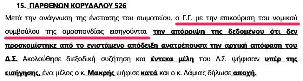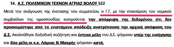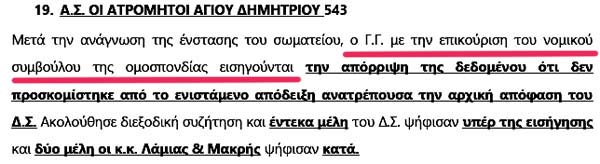ειδικότερα με την στερεότυπη αιτιολογία ότι «Ο παραπάνω σύλλογος μας