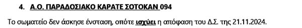 3. Η προσβαλλόμενη απόφαση του ΔΣ της ΕΛΟΚ της 21.11.2024